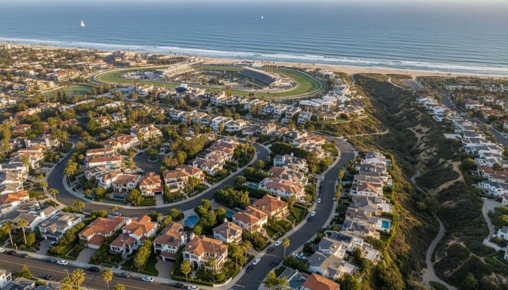 Del Mar is a small but highly desirable community known for the Del Mar Racetrack and the San Diego County Fair. The area features stunning bluffs, pristine beaches, and a charming village filled with upscale dining and shopping. Residents of Del Mar enjoy an active lifestyle focused on the outdoors and the arts. The community’s commitment to preserving its natural environment and high standard of living makes it one of the most prestigious addresses in Southern California, attracting residents who value both luxury and well-being.